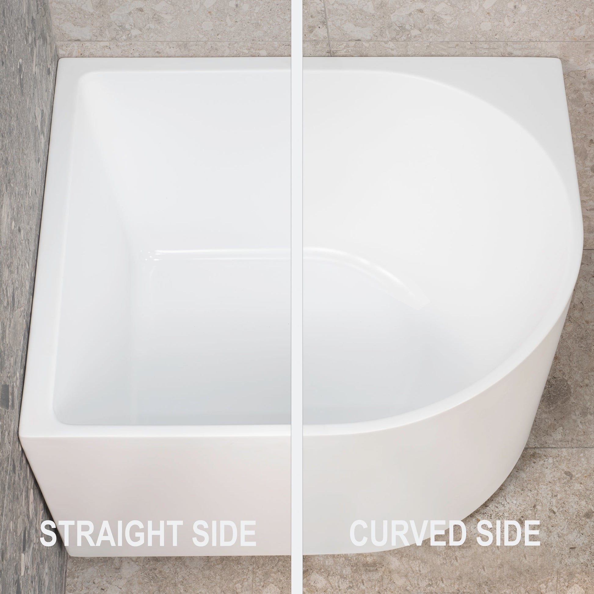 - Spacious corner side allows for an easy shower experience, close up to the shower. For those who don't need a shower, take advantage of the improved space when compared to similar bathtubs