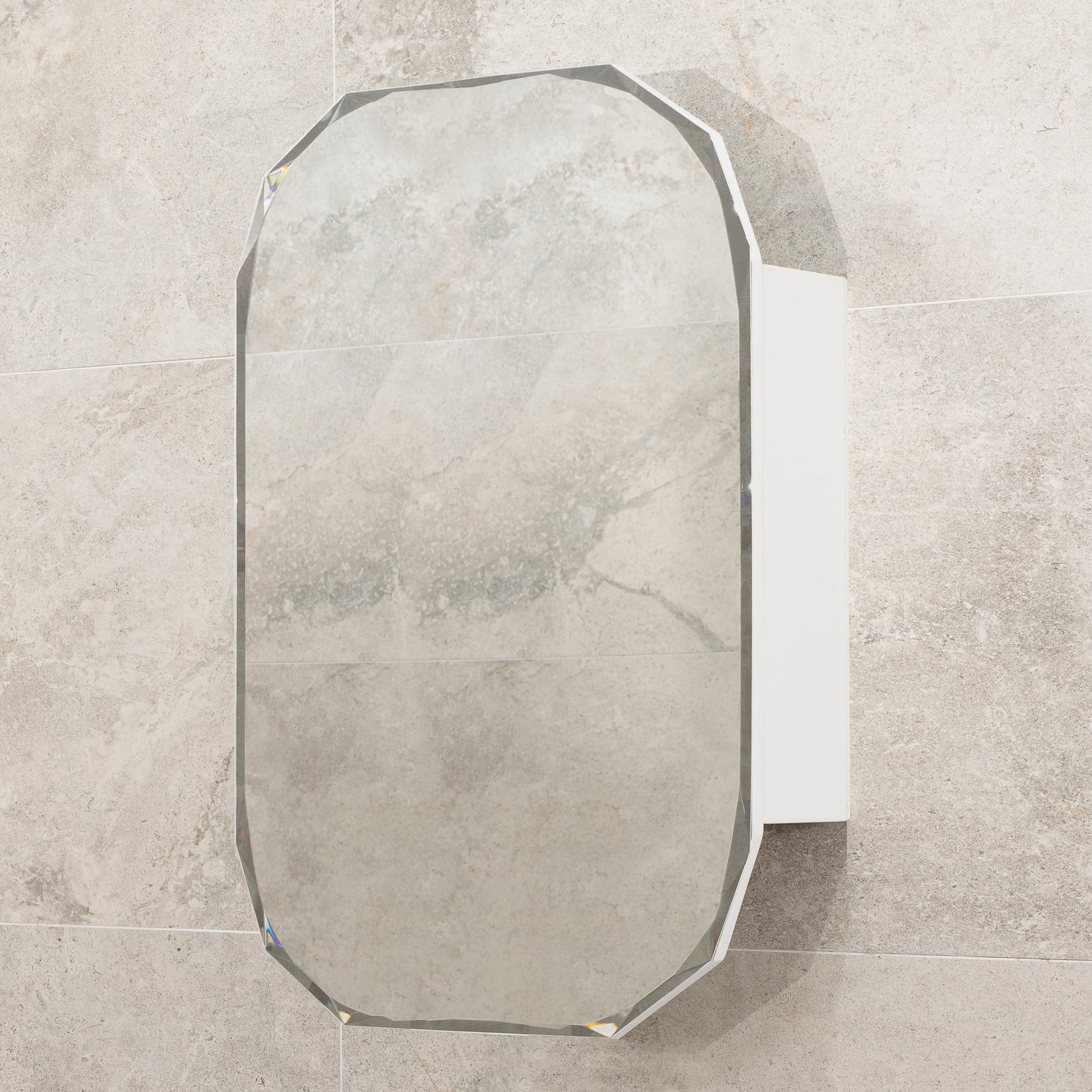 The unique oval shape of this shaving cabinet, together with its flawless jewel mirror design, blends functionality with aesthetic appeal, elevating your bathroom experience.