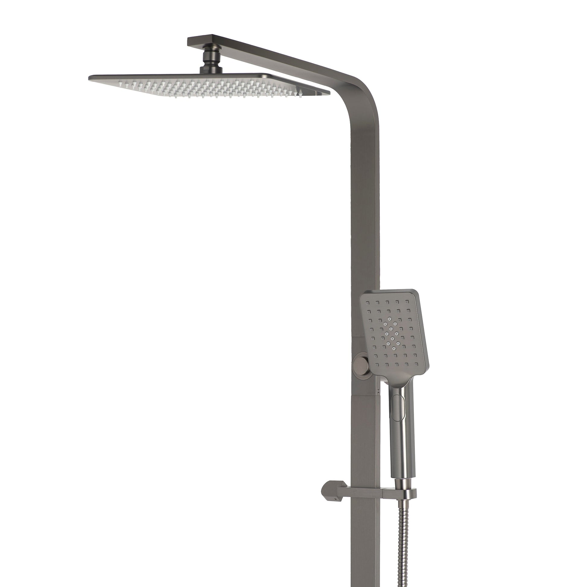 Jena Square Twin Shower System with Adjustable Rail, Push Button Diverter and 250mm Head, Brushed Gunmetal