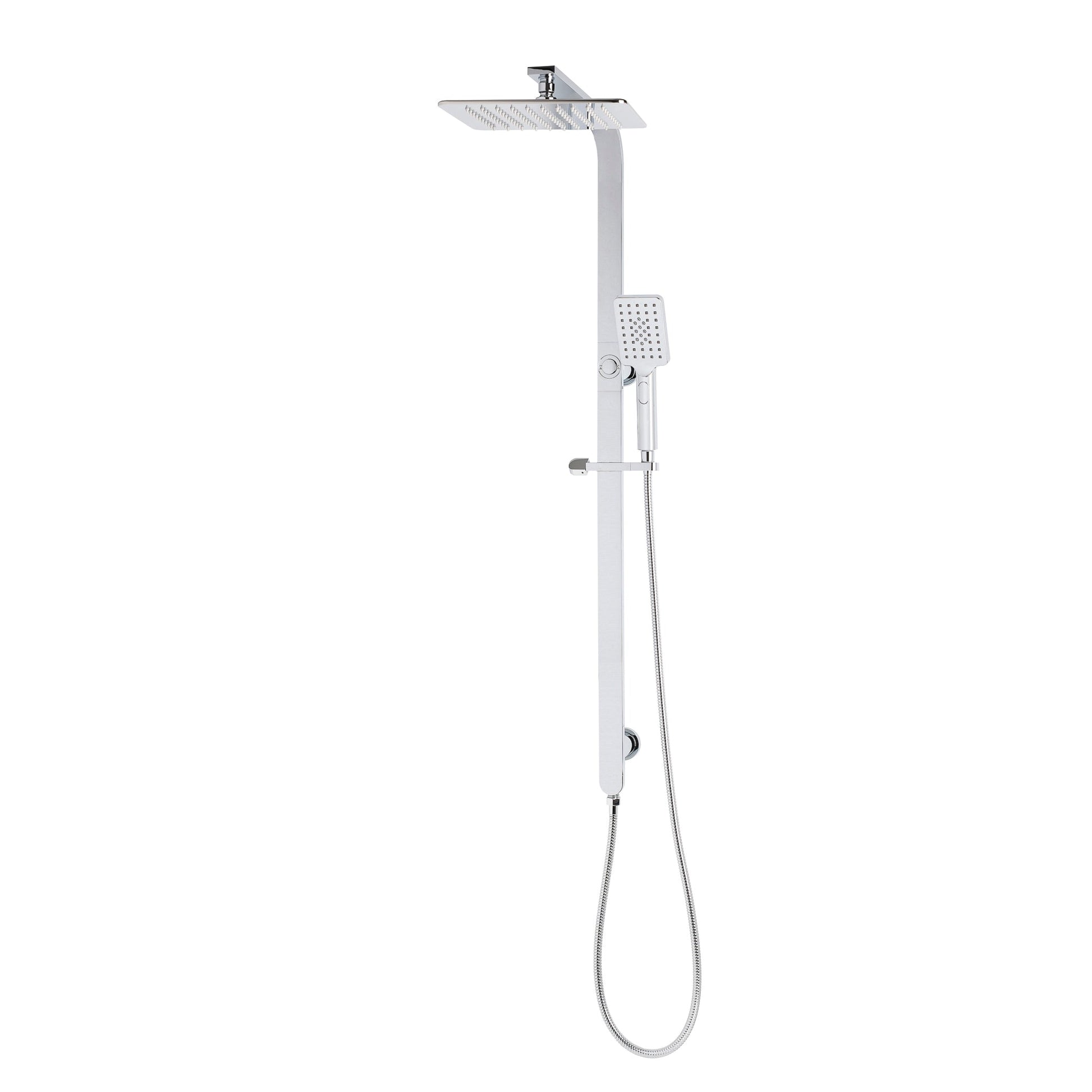 Jena Square Twin Shower System with Adjustable Rail, Push Button Diverter and 250mm Head, Polished Chrome