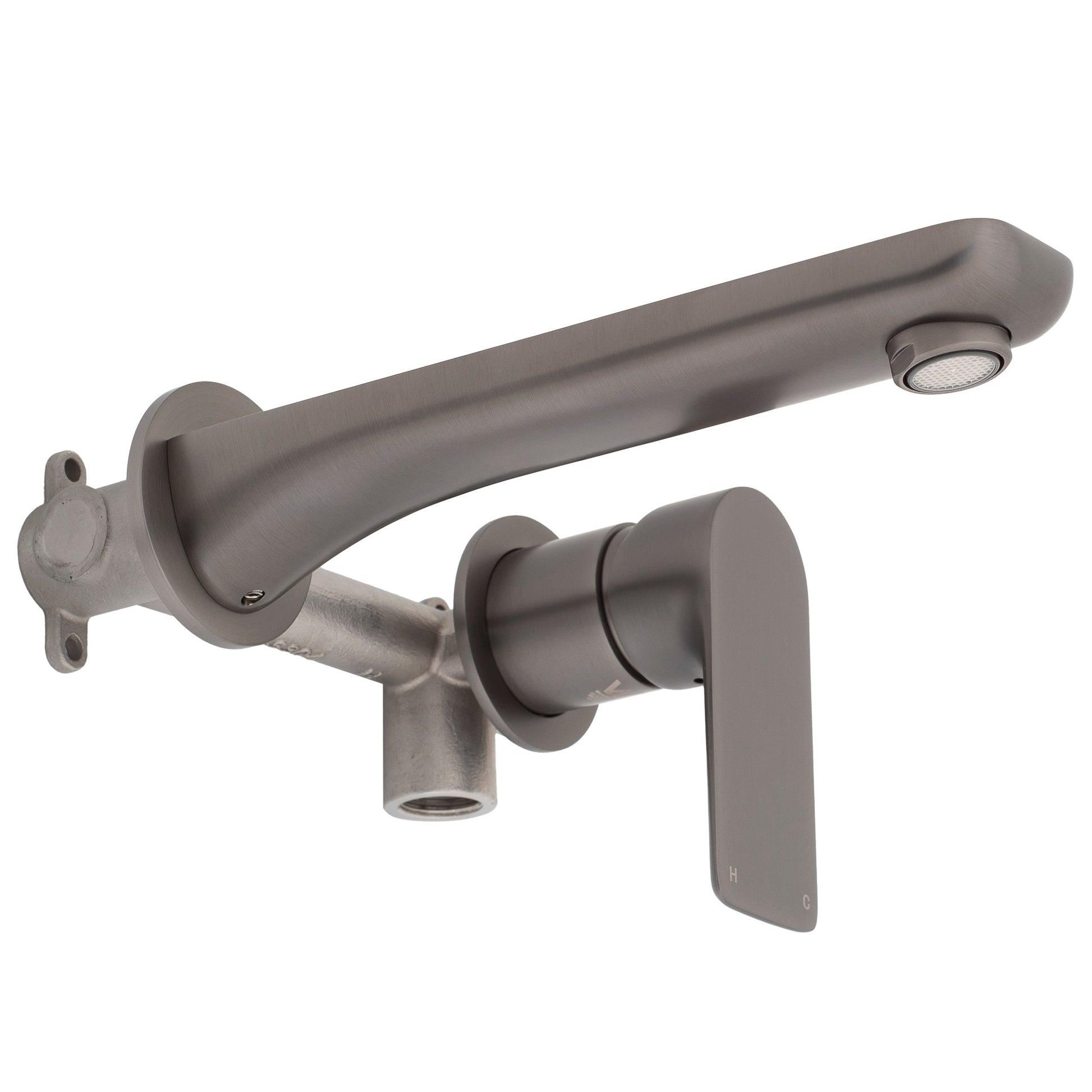 Jena Wall Mounted Basin/ Bath Mixer with Spout and Round Plates, Brushed Gunmetal