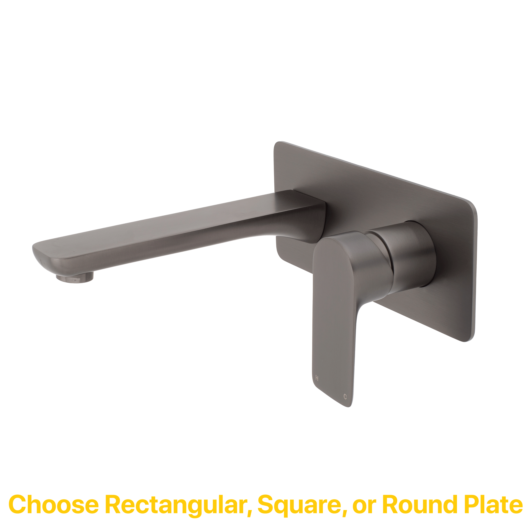 Jena Wall Mounted Basin/ Bath Mixer with Spout and Square Plates, Brushed Gunmetal