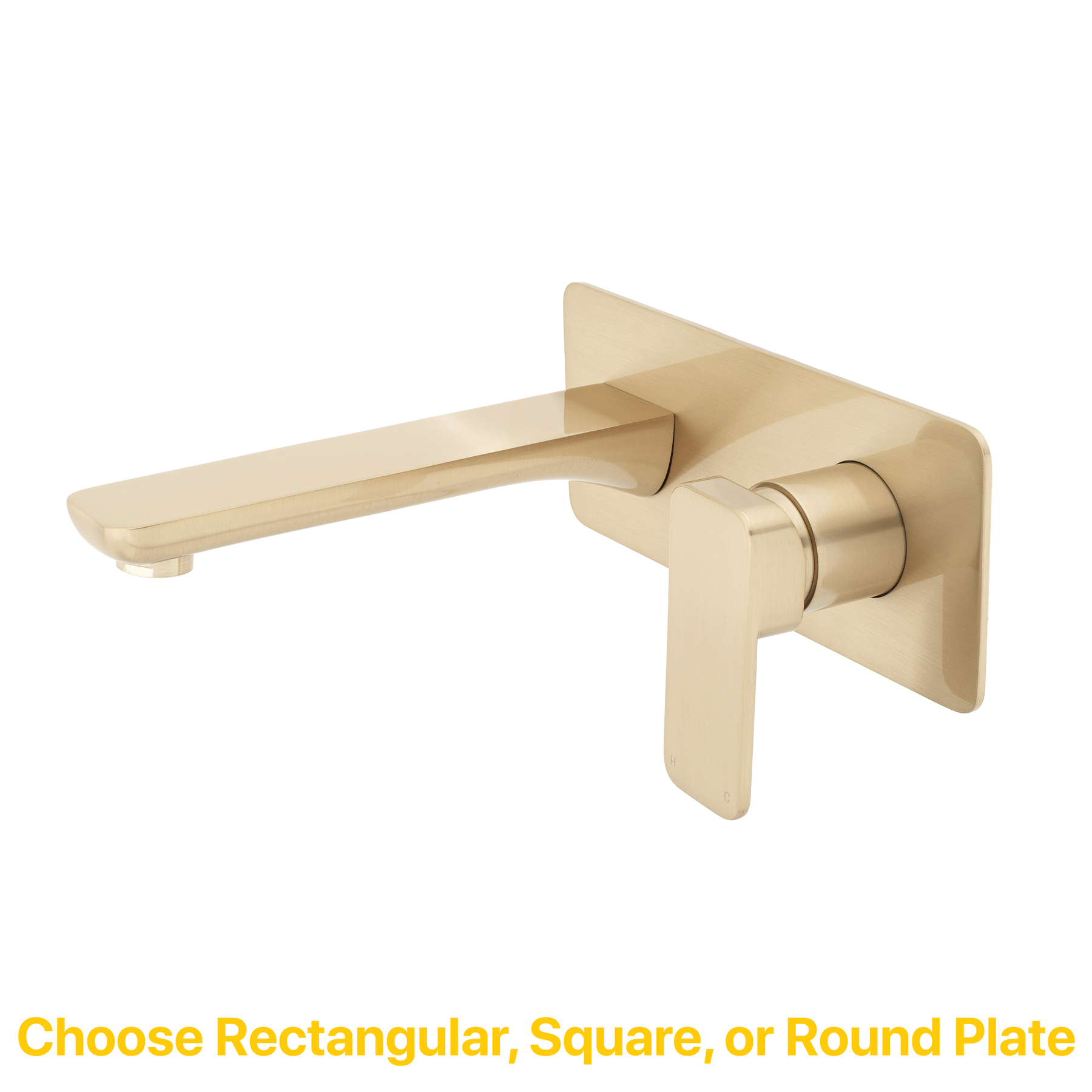 Kiki Wall Mounted Basin/ Bath Mixer with Spout and Square Plates, Brushed Brass (Gold)