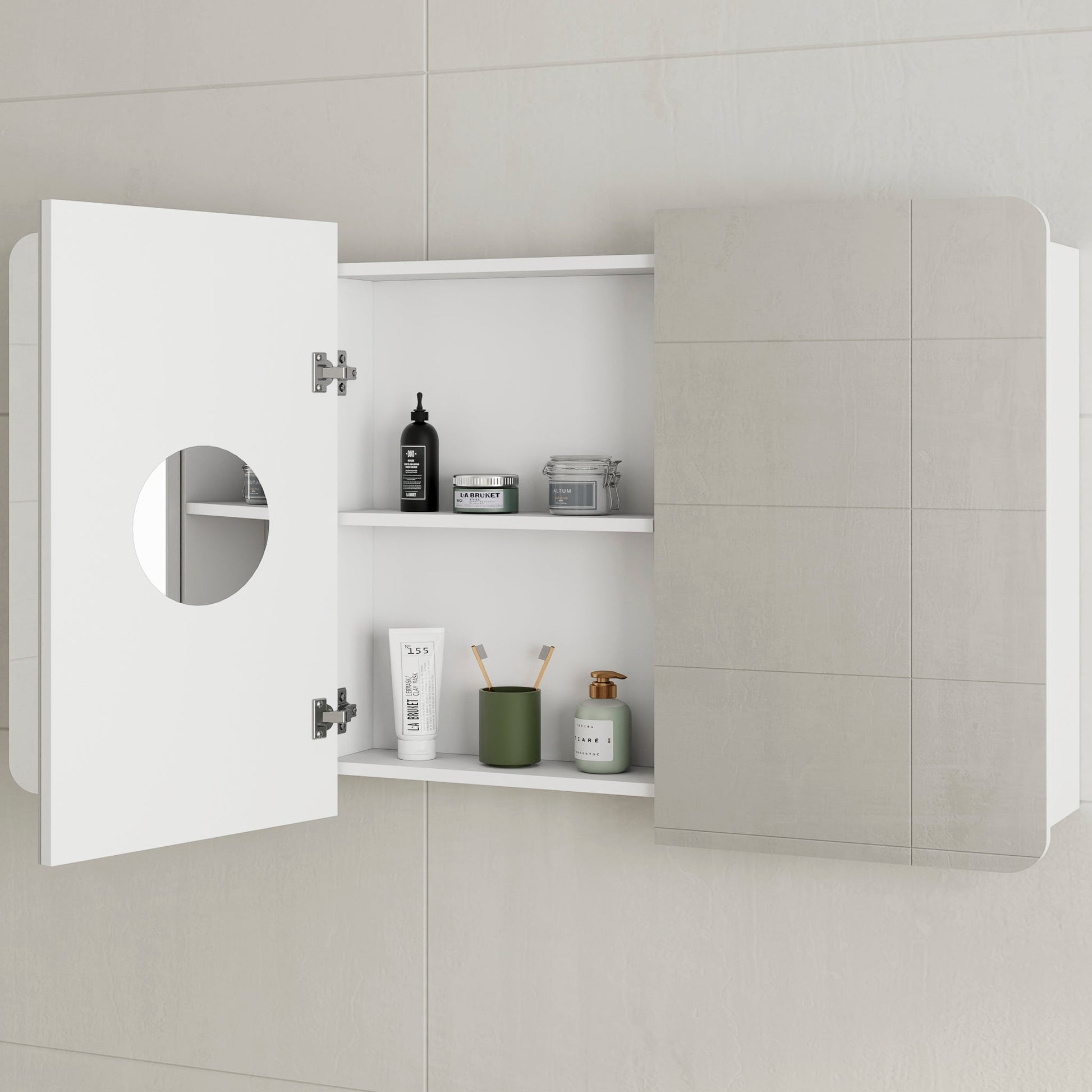 Blending function with minimalist style, the Retti Rectangular Shaving Cabinet Mirror features clean lines and a simple silhouette, perfect for modern bathrooms. Its slim cabinet design is available in matte white or matte black finishes to suit a variety of interior styles. Built for flexibility, it can be installed recessed into the wall for a streamlined look or mounted directly over the wall for easier access. Designed for clarity, it features a copper-free mirror surface with up to 12% better colour accuracy and noticeably reduced green tinge. The inner door includes a convenient magnified mirror for close-up grooming. Soft-close hinges ensure smooth, silent use, and pivot-hole installation offers reliable everyday function. Built to resist rust and corrosion, it’s ideal for high-moisture environments while providing hidden storage to keep bathroom essentials neatly organised.