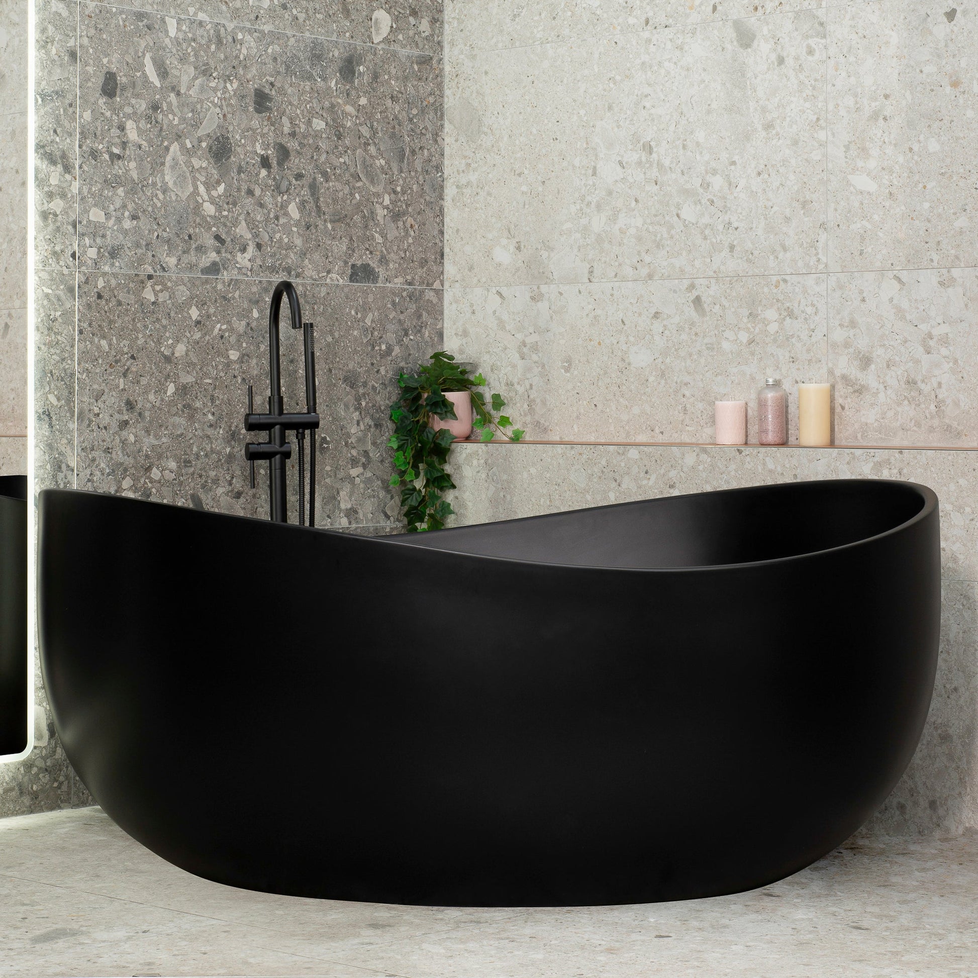 Wave Oval 1800mm Wide Freestanding Bath, Matte Black